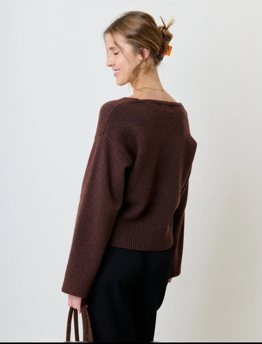 Pull en V marron